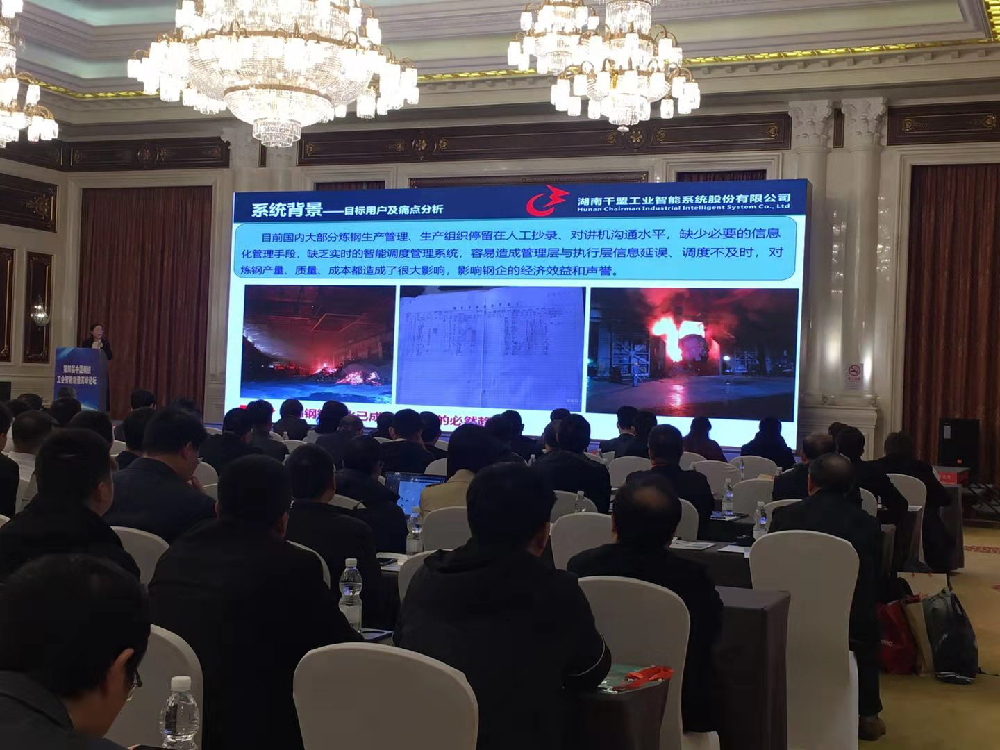 本次高峰論壇設(shè)有五大主題會(huì)議:“中國(guó)鋼鐵工業(yè)智能制造高峰論壇”,“鋼鐵企業(yè)云計(jì)算、大數(shù)據(jù)、人工智能和工控網(wǎng)絡(luò)安全研討會(huì)”,“鋼鐵設(shè)備備件互聯(lián)網(wǎng)+采購(gòu)大會(huì)”,“鋼鐵企業(yè)設(shè)備在線監(jiān)測(cè)與智能傳感技術(shù)研討會(huì)”和“鋼鐵行業(yè)智能制造采購(gòu)需求與技術(shù)對(duì)接會(huì)”。會(huì)上各參展單位和公司各抒己見(jiàn),就“鋼鐵工業(yè)智能制造現(xiàn)狀和解決方案”展開(kāi)深入交流討論。千盟物聯(lián)總經(jīng)理錢艷萍女士分別從“系統(tǒng)背景及目標(biāo)”,“功能案例及介紹”和“成果展示”三個(gè)方面全面介紹了煉鋼智能系統(tǒng)。